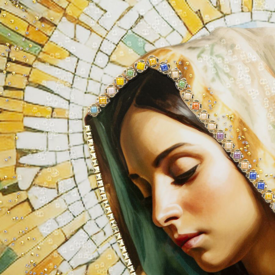 DIPINTO GRANDE SU TELA LACCATO MADONNA CON DECORAZIONI 3D (MAURO FERRETTI)102 CM